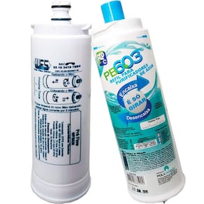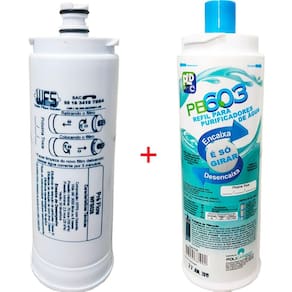 Fabricante/marca do refil: WFS e POLICARBON Modelo: WFS-028 equivalente ao refil PRÉ C+3 Modelo: PB 603 equivalente ao refil C+3 Eficiência da retenção de partículas: Classe III Eficiência da redução de Cloro livre: Aprovado KIT composto: 1 unidade PB 603 + 1 UN WFS-028