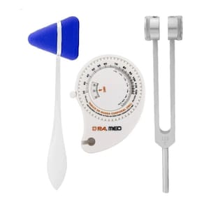 INCLUSO NO KIT 1- Martelo ( Modelo a ser Escolhido ) 1- Diapasão 128 HZ 1- Trena PAMED 150 CM O Martelo BUCK, TAYLOR Ou BAMBINSK para reflexos neurológico é indicado para uso em procedimentos ambulatoriais como também, para aferir sensibilidade e reflexos neurológicos. Os martelos de percussão neural são indicado para induzir a resposta miotática, plantar e cutânea, nos exames de rotina para avaliação dos reflexos do paciente. Martelo para Reflexos Neurológicos BIC; Cabeça com pontas de PVC ; Examinador de reflexo; Confeccionado em metal; Não Estéril e Reutilizável; Qualidade e confiança BIC. Material do Cabo: Metal cromado Material Cabeça: PVC Sintético Instruções de Uso: Deve ser utilizado de acordo com a técnica adotada pelo profissional de saúde. Advertências e Precauções: Não deixar o martelo em superfície molhada ou excesso de calor / Deve ser utilizado por profissional habilitado / Manter o instrumento longe do alcance de crianças. Garantia: 1 ano garantia contra defeito de fabricação Marca: BIC Bem Estar Cadastro na ANVISA: 81535970006 O Diapasão médico STARK BIC 128 CPS com fixador é um instrumento utilizado por profissionais da saúde na avaliação e testes audiológicos na verificação de perda auditiva. O diapasão serve como fonte condutora para a transmissão dos sons por via aérea e via óssea e pode ajudar a direcionar o diagnostico nos casos de lesão do sistema auditivo, tanto relativo ao local quanto à causa da lesão. DIAPASÃO 128 HZ Modelo: 128HZ Material: Alumínio Comprimento Total: 216mm Largura Total: 41mm Garantia: 1 ano contra defeito de fabricação Marca: BIC Cadastro na ANVISA: 81535970007 FITA ANTROPOMÉTRICA – P.A. MED vai te ajudar a medir com precisão as circunferências. Também é utilizada para medir os índices de cintura quadril e massa corpórea. As medidas antropométricas são usadas para avaliar o tamanho, forma e composição do corpo humano. Refere-se ao estudo quantitativo das características físicas e serve como uma ferramenta fundamental para determinar objetivamente as mudanças na composição corporal. ESPECIFICAÇÕES TÉCNICAS FITA ANTROPOMÉTRICA Amplitude de Medição: 0 a 150cm (1,5 metros) Resolução da Escala: Milímetros Material: Caixa plástica contendo uma trena de fita de fibra de vidro inelástica e maleável. Medida: 7,5cm (comprimento) x 7,5cm (Altura) x 2,8cm (Largura) Peso: 50gr Indicação de Uso / Finalidade: Utilizada para verificação de perímetros e circunferências corporais de indivíduo de qualquer faixa etária. Modo de Usar: Conforme Técnica do usuário. Advertências e Precauções: Evitar quedas e batidas. Condições de Armazenamento: Armazenar em local seco e arejado. Contém na Embalagem: 01 Fita Antropométrica. Validade: Indeterminada. Garantia: 90 Dias contra defeito de fabricação. Cadastro da ANVISA: Isento