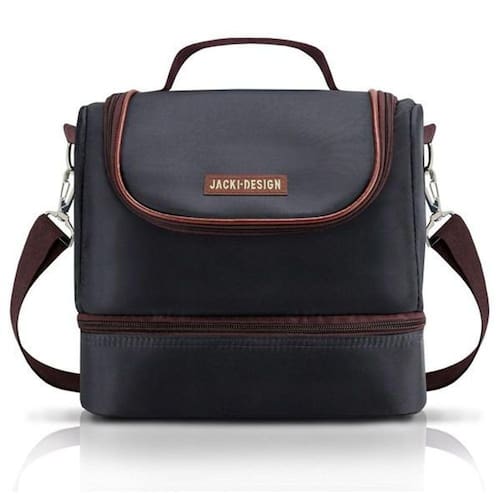 A bolsa térmica com 2 compartimentos é feita de multicamadas e folha de alumínio para manter seu alimento fresco e conservado. Possui fecho em zíper, estampa lisa e alças removíveis. CUIDADOS GERAIS: Limpe a bolsa térmica com um pano úmido. Caso necessário, use sabão neutro ou álcool para higienizar o local. Deixe secar na sombra. ATENÇÃO: Para preservar a vida útil do produto, recomendamos não deixar a bolsa de molho, não levar a máquina de lavar e também não utilizar produtos químicos.