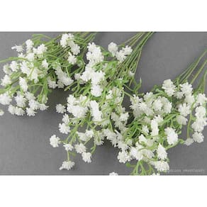Kit flores artificiais 15 hastes de mosquitinhos enfeites Flores artificiais mosquitinho, também conhecida como branquinha, gipso, cravo-de-amor e véu-de-noiva, gipsófila, gypsophila, bem-feitas e vibrante, parece muito realista. Gipsófila artificial é muito versátil é uma escolha ótima escolha para decoração de festas, casamentos, e também como uma enchimento para arranjos e buques geral. Cada haste da planta artificial, tem três galhos com pequenas e delicadas flores brancas, com um caule verde longo e flexível é a decoração perfeita para casamentos. Misture as hastes outras flores, ou use-os por conta própria. Estas belas flores também podem ser usadas para decorar seu quarto, sala de estar, cozinha ou espaço de escritório. Características do produto - Altura: 60 cm - Largura: 20 cm - Cor: Branco - Composição: plástico e arame - Detalhes: Cada haste apresenta 3 galhos, com outros galhos menores e pequenas flores nas extremidades. - Quantidade:12 - SKU: DE9212-6 Informações importantes - Produto importado - As cores podem apresentar ligeira variação de tonalidade - As imagens dos arranjos são apenas ilustrativas - Possui um caule e folhagem flexíveis podendo assumir a posição que desejar - Você pode diminuir o tamanho da haste conforme sua necessidade - As plantas permanentes são embaladas de forma compacta e os caules dobrados. Isso não afeta a qualidade e beleza do produto, basta desdobra-los. Vantagens das flores artificiais As flores artificiais são presentes clássicos e duram muito tempo. Não precisam ser podadas, regadas ou expostas regularmente à luz solar. Elas são bem fáceis de cuidar, precisam somente de higienização periódica. Marca: Decora Flores Artificiais