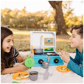 O conjunto de jogos Melissa Doug Lets Explore Camp Stove de 24 peças é ideal para crianças a partir de três anos que desejam explorar a experiência de cozinhar ao ar livre em acampamentos. O fogão de madeira possui botões que giram, queimador ajustável e grelha e chapa dupla face. O produto inclui utensílios de madeira, feltro e comida de madeira, dois pratos e garfos duráveis, xícaras, chaleira, medalhão colecionável e um livro de atividades reutilizável para uma limpeza rápida e fácil. Lets Explore incentiva as crianças a se conectarem com o mundo natural por meio de brincadeiras imaginativas e descobrir a alegria das aventuras ao ar livre que inspiram curiosidade e confiança. O produto é certificado pelo Forest Stewardship Council, garantindo que os produtos provêm de florestas geridas de forma responsável que proporcionam benefícios ambientais, sociais e económicos, e que as florestas são protegidas para as gerações futuras. É um ótimo presente para crianças de 3 a 6 anos, para brincadeiras práticas e sem tela, produto feito com materiais certificados pelo FSC que apoiam a responsabilidade a silvicultura.