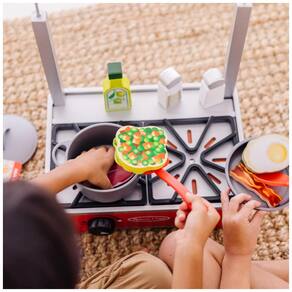 Este conjunto de fogão de simulação é perfeito para criar momentos divertidos na cozinha Ele vem com todos os utensílios e ingredientes necessários para preparar o café da manhã, almoço e jantar. O fogão de madeira resistente possui grelhas de queimador removíveis e botões ajustáveis, além de um rack para pendurar panelas, frigideiras e utensílios. O conjunto de 19 peças inclui condimentos de madeira e alimentos reversíveis, mostrando um lado cru e outro cozido. A construção robusta em madeira promove coordenação olho mão, expressão criativa e brincadeiras imaginativas. Este conjunto de fogão de madeira Deluxe foi projetado pela Melissa Doug, uma empresa que há mais de 30 anos cria produtos lindamente projetados para estimular a imaginação e a criatividade. Eles projetam cada brinquedo de acordo com os mais altos padrões de qualidade para nutrir mentes e corações. Com este conjunto, as crianças podem cozinhar e preparar alimentos de madeira usando um fogão de mentira, que inclui panela, frigideira, tampa, colher e espátula. É um brinquedo perfeito para promover a coordenação olho mão, a expressão criativa e as brincadeiras imaginativas.