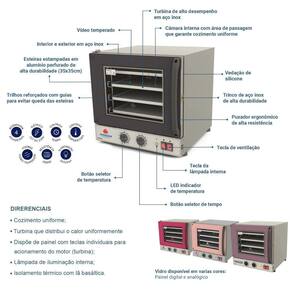 - Capaz de comportar até 8 assadeiras para alocar as formas de 35cm x 35cm