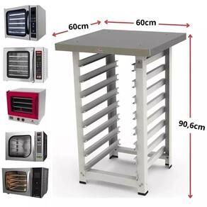 A Mesa Bancada De Suporte Para Fornos Prp-004 Mes-004 Progás é perfeita para alocar o seu forno na cozinha! Capaz de comportar até 8 assadeiras 35x35cm, sua estrutura é feita de aço carbono com tampo em aço inox, garantindo sua resistência e vida útil. Compacto, ele se adapta à diversos estilos de cozinha industrial. Ideal para bares, restaurantes, lanchonetes, padarias e estabelecimentos que procuram economizar seu espaço e usá-lo de forma eficiente!