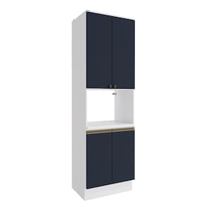 Acabamento: Pintura Brilho / Pintura Fosco | Acabamento da Fita Borda: Papel | Cor: Azul Profundo | Dobradiça: Com Amortecimento | Garantia: 3 meses para defeito de fabricação | Matéria-prima: MDF | Peso suportado por cada prateleira: 7 kg | Puxadores: Puxadores de Metal e de Alumínio | Quantidade de prateleiras: 4 | Sistema de montagem: Parafuso Philips