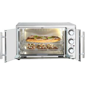 Forno e Fritadeira Sem Óleo Oster 42L French Door 2 em 1. A Praticidade de dois produtos em um só! Seu novo aliado para receitas especiais. Maximize suas opções na cozinha com o Forno e Fritadeira sem óleo French Door da Oster. 5 em 1: São 5 funções pré-programadas para tostar, assar, grelhar, assar por turbo convecção, esquentar e fritar sem óleo. Faça todos os seus preparos em um único produto! - Função Fritar sem óleo: Inclui função para fritar sem o uso de óleo, o que possibilita preparos mais saudáveis. - Função Convecção: Sua tecnologia para assar por convecção faz com que o ar quente circule por todo o forno, assando os alimentos de forma rápida e dourando de forma mais uniforme. - Capacidade de 42 Litros: Possui 42 litros e sua capacidade pode ser duplicada, pois possui duas prateleiras. Ideal para o preparo de duas receitas ao mesmo tempo. - Variação de temperatura: Controle de temperatura ajustável de 90°C a 230°C que possibilita o preparo de carnes e uma grande variedade de alimentos na temperatura ideal. - Exclusivo French Door: As portas possuem abertura compacta, ocupam menos espaço na bancada, deixando o espaço em frente às portas livre para utilizar de apoio para assadeiras e formas. - Fundo Curvo para Assadeiras: O fundo curvo aliado aos 42 litros permite assar pizzas de até de 40cm. Muito mais aproveitamento de espaço e pizzas para a família inteira em poucos minutos. - Acompanha Acessórios: Inclui bandeja, grelha e cesto para auxiliar em todos os preparos. Além da bandeja coletora de gordura, que traz praticidade para a limpeza. - Dimensões [LxAxP]: 550x325x490mm - Garantia 12 meses - Selo de Segurança OCP SGS