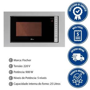 - O sonho da cozinha planejada passa por vários detalhes, e para que você tenha mais uma opção na hora de montar seu ambiente, a Fischer apresenta o Micro-ondas de Embutir Fischer Fit Line 25 litros com função descongelar.