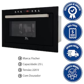MICRO-ONDAS FISCHER INFINITY DE EMBUTIR 25L COM DOURADOR GRILL PRETO 220V 25378(55526)