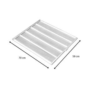 As esteiras Imeca devem ser lavadas com água morna e sabão neutro, evitando o uso de produtos abrasivos e esponjas ásperas para preservar o alumínio perfurado. Após a lavagem, é importante secá-las completamente para evitar oxidação.