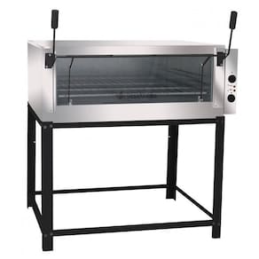 DESCRIÇÃO TÉCNICA - Equipamento de acordo com portaria 446 do inmetro, com selo de conformidade expedido pelo mesmo; - Sistema para abertura do vidro tipo Guilhotina com acabamento em pintura a pó eletrostática com base fosfatizada; - Possui 2 resistência por câmara, sendo 01 inferior e 01 superior com controle individual de temperatura; - Painel composto por 2 termostato de 50 C á 300 C para regulagem de temperatura, sendo um para resistência superior e outro para inferior; - Temperatura de Trabalho- Aconselhável de máximo 300 C; - Lateral, frente e teto externa em Inóx; - 2 Pedra refratária que armazena o calor obtendo maior uniformidade no assado; - Cavalete reforçado em aço carbono com acabamento em pintura a pó eletrostática com base fosfatizada; - Acompanha duas grelhas reforçadas; - Fabricado somente na tensão 220 V; - Luz indicadora de funcionamento; - Revestimento interno em aço galvanizado; - Isolamento em lã de rocha; - Câmara com 2 trilhos de apoio para regulagem de altura da grelha; - OBS: Cabo de alimentação, não acompanha plugue (plugue de 3 pinos) , sendo que deve-se impreterivelmente realizar a conexão do equipamento diretamente a um disjuntor de proteção curva C .
