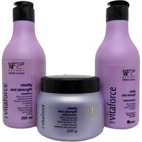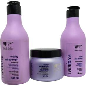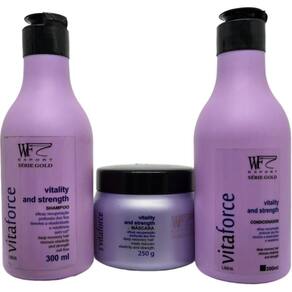 Vitaforce Eficaz recuperação profunda dos fios Devolve elasticidade e resistencia. A linha vita force é indicada para quem quer uma recuperação completa dos fios, pois contém extrato de bambu que é rico em proteínas, sais minerais e vitaminas, que recuperam a maciez e o brilho, fortalecendo a estrutura, hidratando e selando as cutículas capilares. === Shampoo vitaforce Formulado com extrato de bambu e complexo aminoreparador que auxiliam na reconstrução da fibra capilar, devolvendo força. Elasticidade, suavidade e brilho aos cabelos. Modo de utilização: aplique o shampoo vitaforce sobre os cabelos molhados, massageando o couro cabeludo e os fios com as pontas dos dedos até obter uma espuma abundante engue bem. Para potencializar os resultados, utilize toda a ima precaucoes: uso externo. Não ingerir. === Máscara vitaforce extrato de bambu e complexo aminoreparador que auxiliam na reconstrução da fibra capilar, devolvendo força, elasticidadde, suavidade e brilho aos cabelos. Modo de utilização: após o uso do shampoo vitaforce, aplique a máscara vitaforce aos cabelos úmidos e em seu comprimento. Massageie com as pontas dos dedos e deixe agir por alguns minutos. Enxágue bem e aplique o leave in vitaforce a seguir. Pode ser Utilizado com touca térmica deixando agir por 15 minutos. Para potencializar os resultados, utilize toda a linha vitaforce. === Condicionador vitaforce Formulado com extrato de bambu e complexo aminoreparador que auxiliam na reconstrução da fibra capilar, devolvendo força, elasticidade, suavidade e brilho aos cabelos. Modo de utilização: após o uso do shampoo vitaforce aplique o condicionador vitaforce nos cabelos úmidos e em seu comprimento. Massageie com as pontas dos dedos e deixe agir por alguns minutos. Enxáge bem. Para potencializar os resultados, utilize toda a linha vitaforce. Marca: Não Informado Ean: 7894612545881