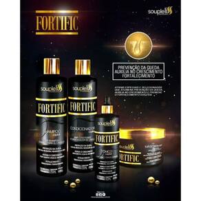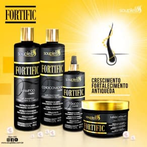MODO DE USO; Com os cabelos úmidos, aplicar uma pequena quantidade do SHAMPOO FORTIFIC SOUPLE LISS e massagear suavemente até formar uma espuma cremosa. Aplicar a MÁSCARA FORTIFIC do comprimento até as pontas (Não aplique diretamente no couro cabeludo), nos cabelos úmidos e já lavados com o SHAMPOO FORTIFIC, massageie os fios com suavidade para perfeito selamento das cutículas. Após enxaguar com água em abundância finalizar com o CONDICIONADOR FORTIFIC para um perfeito selamento das cutículas dos fios. Também indicamos o uso do TONICO FORTIFIC duas vezes ao dia no couro cabeludo e deixar secar naturalmente.