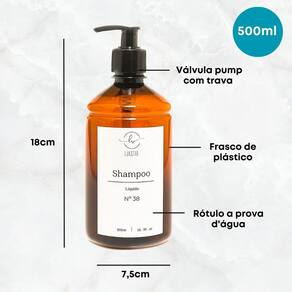 - 1 Frasco de Plástico Âmbar Shampoo 500ml com válvula pump.