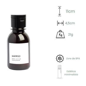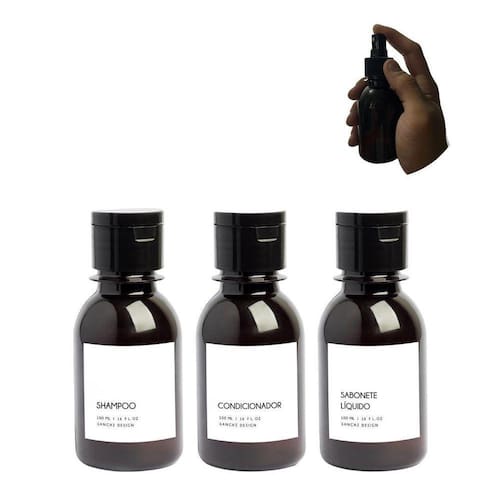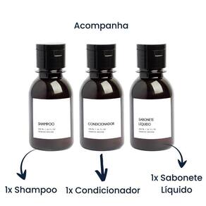 O que acompanha: 3x Frasco Âmbar 100ml Shampoo, Condicionador, Sabonete