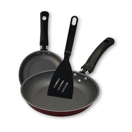 Kit Frigideira Francesa Enjoy 18cm/22cm com Espátula - Vermelha Feitas para proporcionar um cozimento uniforme e eficiente, as frigideiras francesas contam com um design elegante e ergonômico, garantindo o máximo conforto durante o preparo de suas receitas. Para tornar a experiência ainda mais completa, conta com uma espátula feita de nylon, perfeita para manipular seus pratos com precisão e delicadeza. Com uma superfície antiaderente, poderá cozinhar com confiança, sem preocupações com alimentos grudados no fundo da panela. -Não esquentar a panela vazia Cozinhar com fogo médio ou baixo -Usar somente utensílios de plástico ou madeira ESPECIFICAÇÕES: Material: Liga de Alumínio Antiaderente e Nylon Dimensões: -Frigideira 22cm: Comprimento:38cm x Larg.: 22cm x Alt.: 4cm -Frigideira 18cm: Comprimento: 34cm x Larg.: 18cm x Alt.: 4cm -Espátula: Comprimento: 25,5cm x Larg: 8cm Peso: Aprox. 445g CONTÉM: 01 KIT FRIGIDEIRA FRANCESA ENJOY 18CM/22CM COM ESPÁTULA - VERMELHA