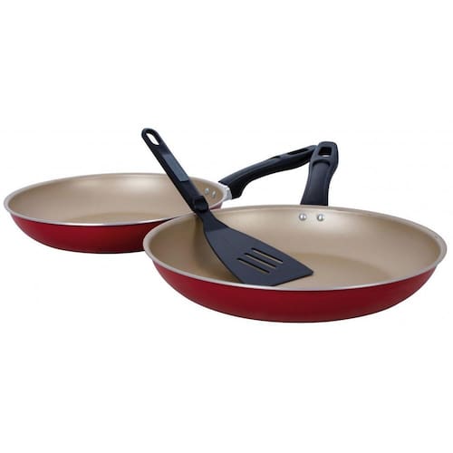 Kit Frigideira Francesa Enjoy Vermelha Com Espátula Alegrete Produzida em alumínio. A frigideira francesa enjoy tem um cabo resistente e vai facilitar o seu dia a dia por ser antiaderente, dando mais saúde à sua família por usar menos óleo e por ser mais fácil de limpar. Contém: 1 frigideira francesa enjoy 18cm / 1 frigideira francesa enjoy 22cm / 1 espátula Cor: vermelho Material: alumínio Medidas da embalagem: 37cm comp. X 7cm alt. X 23cm larg. Peso: 0,500kg Ean: 7897103800681