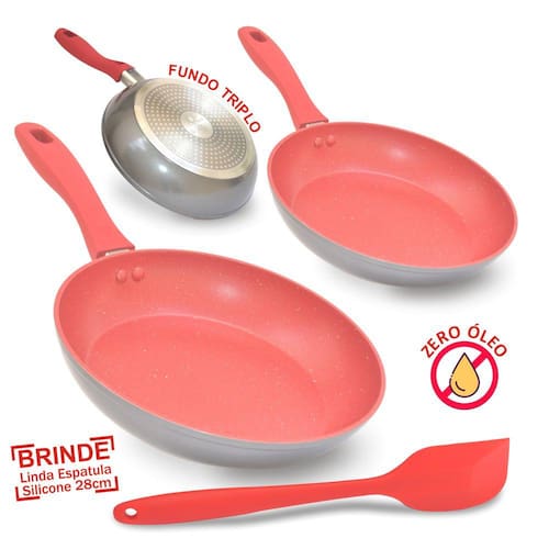 Kit Frigideira Panela Grande 24cm Antiaderente Ceramica Indução Gás Profissional