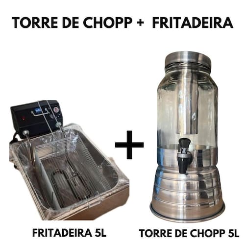 Kit fritadeira eletrica e torre de chopp Cuba 1/3x100mm para até 3 litros cada 2 litros de óleo para fritura de batatas, salgados, petiscos e congelados 3 litros de óleo para fritura de pastéis, sonhos e bolinhos a base de farinha Termostato de 300oc Voltagem 110v ou 200v escolha antes de clicar em comprar 110v - 2000w - tomada 20a