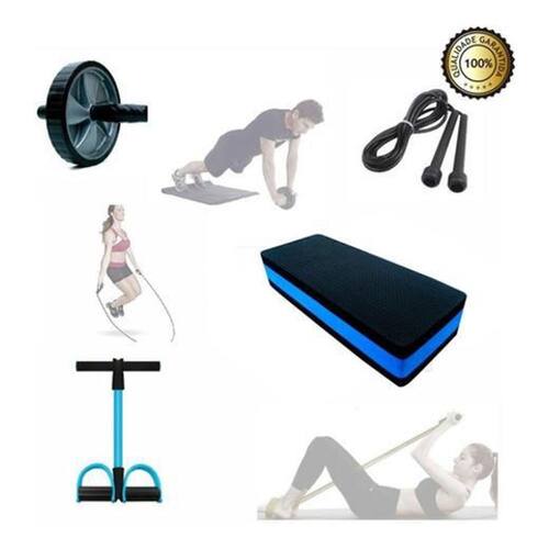 - roda abdominal - extensor elástico com apoio para pés - step em eva 60x30x10cm - corda de pular