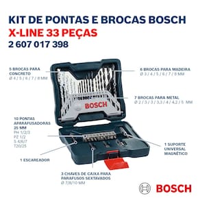 * 1 Jogo de Acessórios Bosch X-Line com 33 Peças em maleta plástica