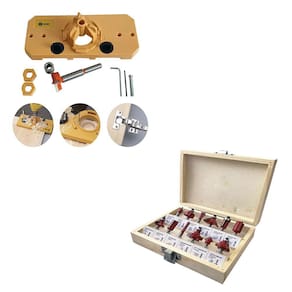 Gabarito de Furação Para Dobradiças Khi-Hinge - CHARBS + Jogo de Fresas para Tupia Madeira 6mm com 12 Peças Charbs