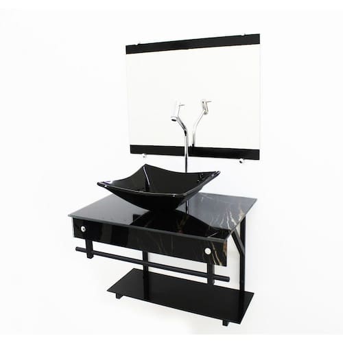 Kit Gabinete Banheiro 60Cm Cuba Quadrada Mármore Preto + Torneira Os nossos gabinetes são indicados para projetos arrojados e de muito bom gosto, além de valorizar o seu ambiente com sofisticação em uma decoração de alto padrão, ele consegue usufruir das vantagens que o vidro proporciona e gerar uma durabilidade indiscutível, sem contar que com as várias opções de cores, você sempre poderá encontrar uma cor perfeita para o seu banheiro. Utilizamos impressão em alta definição, garantindo com que as cores impressas não se deformem com o passar dos anos. Na compra deste super combo 2 em 1, você compra de uma só vez, o gabinete e a torneira, de forma mais fácil, mais rápido e mais barato. Dados técnicos Itens inclusos: - bancada de vidro com furo para torneira 3,5cm diâmetro e válvula click 4,5cm diâmetro ; - cuba de vidro; - espelheira espelho ; - estrutura e porta toalha de aço eletrostático; - kit parafusos completo para instalação; - prateleira de vidro da bancada; - testeira de vidro; - válvula click. Dimensões: - bancada de vidro: 60 x 45cm largura x profundidade ; - cuba de vidro: 35x35cm largura x comprimento ; - prateleira da bancada: 60 x 25cm largura x profundidade ; - espelheira espelho : 60 x 45cm largura x altura ; - porta toalha: 60cm largura ; - testeira de vidro: 60 x 7cm largura x altura ; - válvula click: 1 1/4 Espessuras: - bancada de vidro: 8mm; - cuba de vidro: 12mm; - espelheira espelho : 3mm; - prateleira da bancada: 6mm; - testeira de vidro: 6mm; Dados da torneira: Material: liga metálica cromada; Conexão de entrada: 1/2 polegada -1/4 volta; Altura total da torneira: 37 cm; Altura da queda dágua: 27 cm. : 12 meses conforme política de troca e devoluções . Montagem: montagem e instalação não inclusa na venda ou preço do produto, elas são de inteira responsabilidade do cliente. Imagens ilustrativas. Marca: Não Informado