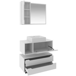 • Largura: Gabinete: 80 cm/Espelheira: 80 cm/Balcão: 80 cm/Cuba: 40 cm