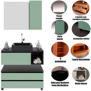 • Altura: Gabinete: 26,5 cm/Espelheira: 80 cm/Balcão: 38 cm/Cuba: 10 cm