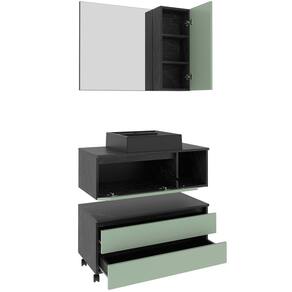 • Material: Gabinete/Balcão e Espelheira: Estrutura em MDP / Cuba: Mármore sintético