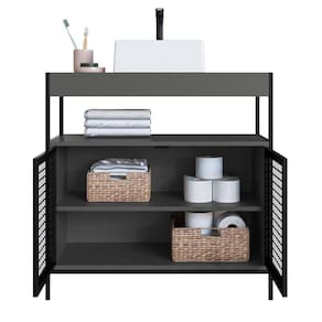 Kit Gabinete E Cuba Para Banheiro P1038c Grafite Pp Milani Store Grafite