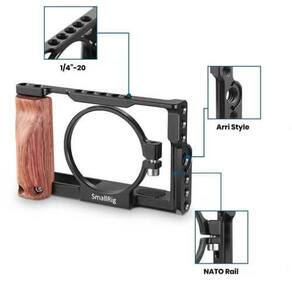 O Kit Gaiola Cage SmallRig 2105 com Punho Handgrip para Sony RX100 V / IV / III é um quadro de proteção com Alça Punho Handgrip Lateral de Madeira Removível e várias opções para a montagem de acessórios em sua Câmera Sony Cyber-Shot. Múltiplas Roscas 1/4-20 para Acessórias estão embutidas na Gaiola Cage, uma Montagem de acessórios do estilo ARRI e um trilho da Nato estão embutidos na Gaiola SmallRig.O Kit Gaiola Cage SmallRig 2105 com Punho Handgrip de Madeira mantém acesso aos controles e portas da Câmera quando montado na sua Câmera Sony Cyber-Shot RX100 V / IV / III. Construída a partir de uma liga de alumínio, esta Gaiola Cage para Sony SmallRig prende-se ao redor da montagem da lente e inclui roscas de tripé de 1/4-20 e 3/8-16 na parte inferior.Principais Características: A primeira Gaiola Cage do mundo para Cyber-Shot Sony RX100 M3 / M4 / M5 / M5A. Encaixa de Forma Perfeita e Firme com o anel da lente e fácil acesso às portas e botões. Punho Handgrip Lateral de Madeira Removível para uma experiência emocionante e confortável ao fotografar. Interfaces versáteis Múltiplas Roscas 1/4-20, Trilho NATO e Montagem ARRI para fixação de acessórios externos.Compatibilidade: Câmera Sony Cyber-Shot DSC-RX100 VCâmera Sony Cyber-Shot DSC-RX100 IVCâmera Sony Cyber-Shot DSC-RX100 III Marca: Não Informado