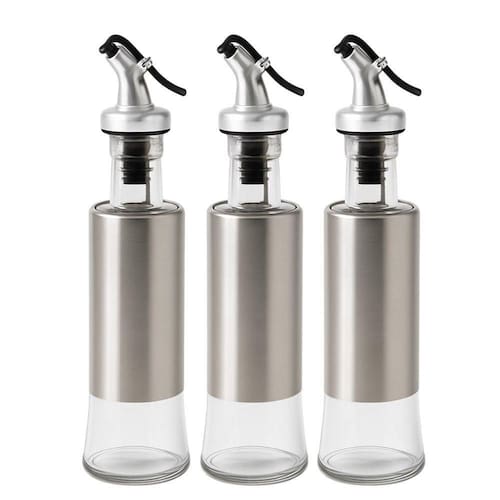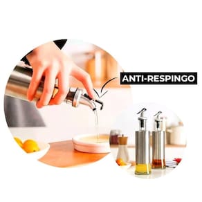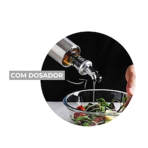 Kit Galheteiro Porta Azeite e Vinagre 15805 para Servir em Vidro e Inox com Dosador e Bico Anti-respingo Prata em Casa