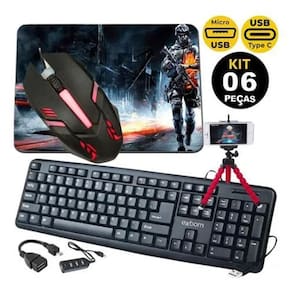 Silencioso e leve Este kit inclui um periférico que tem uma arquitetura de membrana. O que isso significa Que seu teclado permitirá que você desfrute de toques silenciosos. Ao contrário dos mecânicos, estas categorias de dispositivos são leves e fáceis de transportar.