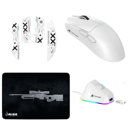 Kit Gamer Mouse Attack Shark X11 Branco + Mousepad Sniper Eleve sua experiência gamer com o combo perfeito para precisão e desempenho. O Mousepad Gamer Rise Mode Sniper oferece uma superfície Speed em Fibertek resistente à água, ideal para movimentos rápidos e controle aprimorado, enquanto o Mouse Gamer Attack Shark X11 combina conectividade Tri-Mode, sensor PixArt de 22000 DPI e iluminação RGB personalizável para máxima performance e estilo.
