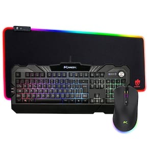 Kit gamer mouse sem fio teclado semi mecanico e mousepad rgb Complete seu setup com esse mega kit gamer