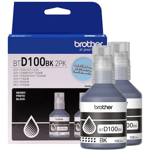 - Este kit acompanha 2 garrafas de tinta preta de ultra rendimento (BTD100BK), que rendem até 7.500 páginas/cada.