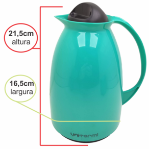 O interior da Garrafa Térmica comporta 650 ml, seu interior é de ampola de vidro e o exterior de Plástico Resistente. Possui tambpa rosqueavel e sua alça é reforçada e ainda possui bico antigotas.