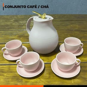 Conjunto garrafa térmica café chá 1l premium pássaro dourado com 4 xícaras pires cerâmica premium 210ml Atenção Este kit foi desenvolvido para quem busca sofisticação, praticidade e beleza em cada detalhe. A garrafa térmica premium pássaro dourado 1 litro mantém suas bebidas quentes ou frias por horas, com design moderno e acabamento elegante que combina com qualquer ambiente. O conjunto de 4 xícaras com pires em cerâmica premium adiciona charme, delicadeza e requinte à mesa posta, tornando este kit perfeito para receber convidados, reunir a família ou transformar o café da manhã em um momento especial. Informações do produto A garrafa térmica pássaro dourado alia praticidade e estilo. Com capacidade de 1 litro, é ideal para conservar café, chá, água ou sucos na temperatura ideal por mais tempo. Seu sistema de alavanca abre e fecha facilita o uso no dia a dia, garantindo eficiência térmica e vedação segura. Produzida em polipropileno resistente e com frasco interno em vidro, oferece durabilidade e desempenho superior. As xícaras em cerâmica premium com capacidade de 210ml cada, acompanhadas de pires delicados, proporcionam um toque sofisticado e diferenciado à mesa. Compatíveis com micro-ondas e fáceis de limpar, unem resistência, praticidade e estilo, sendo perfeitas para servir café ou chá em ocasiões especiais ou no cotidiano. Especificações técnicas do produto - design elegante e versátil que valoriza a mesa posta e combina com qualquer estilo de ambiente - sistema de alavanca abre e fecha que garante praticidade, vedação eficiente e preservação da temperatura - frasco interno em vidro que conserva líquidos quentes ou frios sem alterar o sabor - estrutura resistente em polipropileno com acabamento premium e detalhe pássaro dourado no topo da tampa - alça ergonômica que proporciona conforto e facilidade no transporte - xícaras e pires em cerâmica premium na cor rosa, com alta resistência e fácil limpeza - capacidade de 210ml em cada xícara, ideal para café ou chá em quantidades generosas - compatibilidade das xícaras com micro-ondas, garantindo mais praticidade no dia a dia Ficha técnica do produto - capacidade garrafa: 1 litro - altura garrafa: 23 cm - diâmetro garrafa: 17 cm - peso garrafa: 650 g - material externo garrafa: polipropileno premium - material interno garrafa: vidro - sistema: alavanca abre e fecha com vedação eficiente - conservação: até 6 horas líquidos quentes e até 12 horas líquidos frios - produto: atóxico - capacidade xícaras: 210 ml cada - medidas xícaras: 11,3 cm comprimento, 8,8 cm largura, 6,5 cm altura - material xícaras e pires: cerâmica premium rosa - quantidade peças conjunto: 4 xícaras e 4 pires Antes e depois do primeiro uso - antes do uso: lave a garrafa com água morna e sabão neutro para remover resíduos de fabricação. Realize o pré-aquecimento com água quente ou o pré-resfriamento com água fria conforme a bebida desejada. Lave as xícaras e pires com detergente neutro e esponja macia. - após o uso: lave a garrafa manualmente, evitando produtos abrasivos e máquina de lavar louças. Evite quedas e impactos, pois o frasco interno é de vidro. Para as peças em cerâmica, evite choques térmicos e lave sempre com cuidado para preservar a durabilidade. Itens inclusos no pacote - 01 garrafa térmica café chá 1 litro premium pássaro dourado - 04 xícaras de cerâmica premium rosa 210ml - 04 pires de cerâmica premium rosa Todas as fotos são reais dos produtos. Qualquer dúvida, estamos à disposição. Dúvidas frequentes 01 - o kit é novo Acompanha 03 - a garrafa mantém a bebida quente por quanto tempo R: a tecnologia de isolamento com frasco de vidro mantém líquidos quentes ou frios por várias horas.