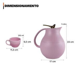 Conjunto garrafa térmica café chá 1l premium pássaro dourado com 4 xícaras pires cerâmica premium 210ml Atenção Este kit foi desenvolvido para quem busca sofisticação, praticidade e beleza em cada detalhe. A garrafa térmica premium pássaro dourado 1 litro mantém suas bebidas quentes ou frias por horas, com design moderno e acabamento elegante que combina com qualquer ambiente. O conjunto de 4 xícaras com pires em cerâmica premium adiciona charme, delicadeza e requinte à mesa posta, tornando este kit perfeito para receber convidados, reunir a família ou transformar o café da manhã em um momento especial. Informações do produto A garrafa térmica pássaro dourado alia praticidade e estilo. Com capacidade de 1 litro, é ideal para conservar café, chá, água ou sucos na temperatura ideal por mais tempo. Seu sistema de alavanca abre e fecha facilita o uso no dia a dia, garantindo eficiência térmica e vedação segura. Produzida em polipropileno resistente e com frasco interno em vidro, oferece durabilidade e desempenho superior. As xícaras em cerâmica premium com capacidade de 210ml cada, acompanhadas de pires delicados, proporcionam um toque sofisticado e diferenciado à mesa. Compatíveis com micro-ondas e fáceis de limpar, unem resistência, praticidade e estilo, sendo perfeitas para servir café ou chá em ocasiões especiais ou no cotidiano. Especificações técnicas do produto - design elegante e versátil que valoriza a mesa posta e combina com qualquer estilo de ambiente - sistema de alavanca abre e fecha que garante praticidade, vedação eficiente e preservação da temperatura - frasco interno em vidro que conserva líquidos quentes ou frios sem alterar o sabor - estrutura resistente em polipropileno com acabamento premium e detalhe pássaro dourado no topo da tampa - alça ergonômica que proporciona conforto e facilidade no transporte - xícaras e pires em cerâmica premium na cor rosa, com alta resistência e fácil limpeza - capacidade de 210ml em cada xícara, ideal para café ou chá em quantidades generosas - compatibilidade das xícaras com micro-ondas, garantindo mais praticidade no dia a dia Ficha técnica do produto - capacidade garrafa: 1 litro - altura garrafa: 23 cm - diâmetro garrafa: 17 cm - peso garrafa: 650 g - material externo garrafa: polipropileno premium - material interno garrafa: vidro - sistema: alavanca abre e fecha com vedação eficiente - conservação: até 6 horas líquidos quentes e até 12 horas líquidos frios - produto: atóxico - capacidade xícaras: 210 ml cada - medidas xícaras: 11,3 cm comprimento, 8,8 cm largura, 6,5 cm altura - material xícaras e pires: cerâmica premium rosa - quantidade peças conjunto: 4 xícaras e 4 pires Antes e depois do primeiro uso - antes do uso: lave a garrafa com água morna e sabão neutro para remover resíduos de fabricação. Realize o pré-aquecimento com água quente ou o pré-resfriamento com água fria conforme a bebida desejada. Lave as xícaras e pires com detergente neutro e esponja macia. - após o uso: lave a garrafa manualmente, evitando produtos abrasivos e máquina de lavar louças. Evite quedas e impactos, pois o frasco interno é de vidro. Para as peças em cerâmica, evite choques térmicos e lave sempre com cuidado para preservar a durabilidade. Itens inclusos no pacote - 01 garrafa térmica café chá 1 litro premium pássaro dourado - 04 xícaras de cerâmica premium rosa 210ml - 04 pires de cerâmica premium rosa Todas as fotos são reais dos produtos. Qualquer dúvida, estamos à disposição. Dúvidas frequentes 01 - o kit é novo Acompanha 03 - a garrafa mantém a bebida quente por quanto tempo R: a tecnologia de isolamento com frasco de vidro mantém líquidos quentes ou frios por várias horas.