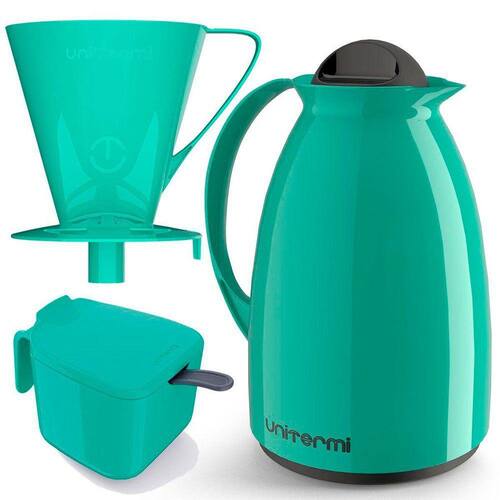 Esta garrafa será o companheiro para manter seu café fresco e quente. Com design elegante e cores vibrantes, a garrafa possui uma excelente capacidade, e com o açucareiro e suporte filtro inclusos você terá tudo o que precisa para desfrutar de uma bebida quente.