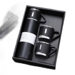 01 garrafa térmica de inox 500 ml com tampa estilo copo 01 kit garrafa térmica vacuum flask set 500ml 03 xícaras 01 caixa de proteção 01 sacola customizada para presente