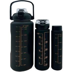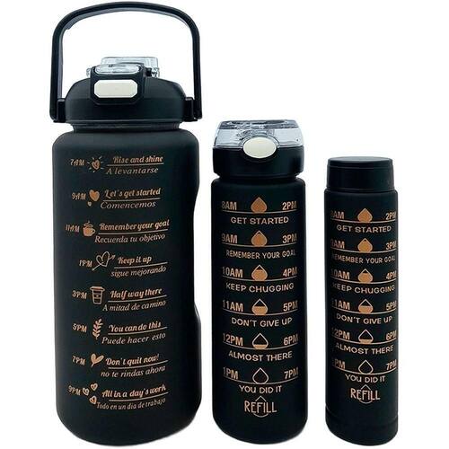 Kit Garrafas de Água com Frases Motivacionais Tampa Antivazamento Preto