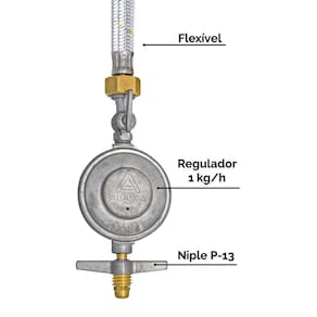 Especificações Técnicas Mangueira flexível: Revestida em aço inox 304 com borracha de alta resistência, conforme norma NBR 14955. Pressão máxima de trabalho: 7 bar. Temperatura máxima de operação: 120C. Dimensões da mangueira: 3/8 I x 1000 mm. Adaptador de aperto rápido: Para instalação prática e segura. Regulador de gás: Vazão de 1 kg/h modelo Aliança 503/10 , garantindo um fluxo estável e eficiente. Comprimento da mangueira: 100 cm. Diâmetro da mangueira: 1,6 cm.