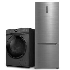 Kit Geladeira Inverse 423L cor Inox + Lava e Seca 10,5kg Titanium Midea HealthGuard Conectada - 220V