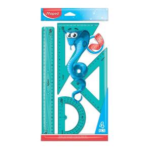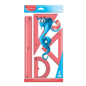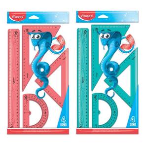 Kit Geometrico Twist'n Pulse 4 peças, Régua 30cm, Esquadro 60º e 45º, Transferidor 180º - Maped