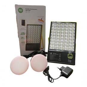 Com a esse kit de energia solar você poderá usá-lo em qualquer lugar, seja no camping, acampamento, pescaria no seu sítio, fazenda ou até em caso de emergência se faltar energia em sua casa, além da luminária com 54 leds de alta intensidade de 28w, você tem a sua disposição a saída usb e pode usá-la como power bank para você carregar seus eletrônicos como celulares ou smartphones, ainda acompanham duas lâmpadas bulbo led flood lamp de 3w cada.