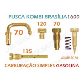 O Kit Giclagem / Gicle Carburador Simples Kombi 1600 Gasolina é composto por diversas peças essenciais para a calibragem precisa do carburador. Composto por um tubo injetor de 70, um gicleur principal de 120, um gicleur de marcha lenta de 70, um corretor de ar flauta de 135 e uma agulha do ar, esse kit garante um funcionamento mais eficiente e econômico do veículo.