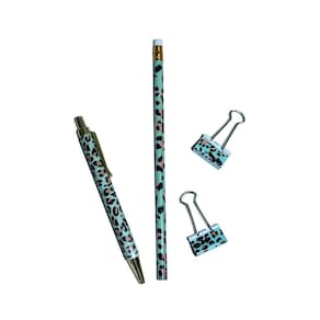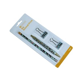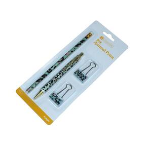 Kit Gift Le Office Animal Print 1 Lápis Grafite, 1 Caneta Fine, 2 Binders Clips 25mm