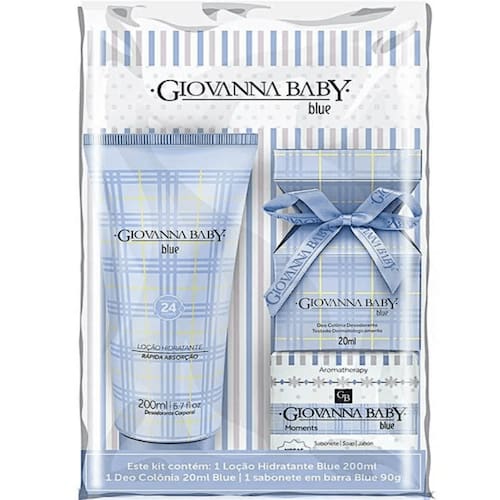 O Kit Giovana Baby Blue conta com uma Loção Hidratante de 200ml que proporciona para sua pele uma hidratação profunda, pele macia e a deixando perfumada durante o dia a dia, também conta com uma Colônia de 50ml contém notas refrescantes como Jasmim, Rosa e Ylang-Ylang que vão te deixar com uma sensação de leveza o dia todo e por fim conta com o Sabonete em Barra de 90g limpa sua pele de suavemente e a deixando com um delicioso aroma, pela fragrância da Giovana Baby. Sendo assim um a ótima opção para você que gosta de manter sua pele sempre hidratada, limpinha e cheirosa.