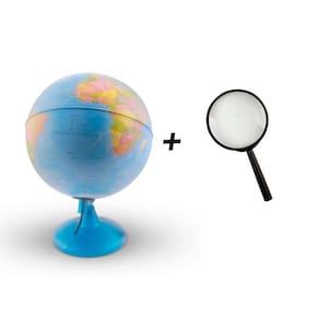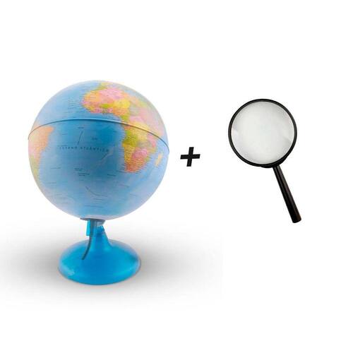 KIT Globo Luminoso Day Night LED Base em Azul com Dupla Cartografia com Lupa 75mm